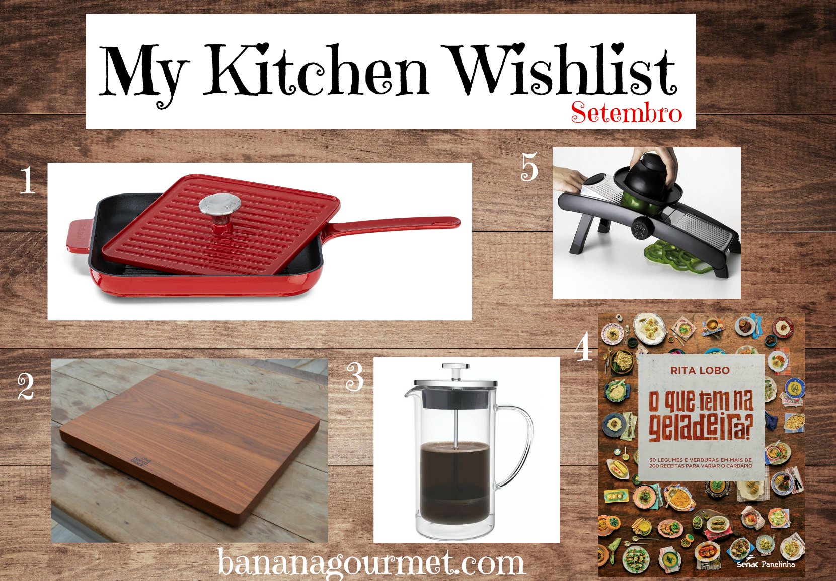 Claro que eu poderia colocar minha sonhada batedeira Kitchenaid, mas pensei em objetos realmente práticos que tem feito falta, e novidades que sempre encontro na internet!